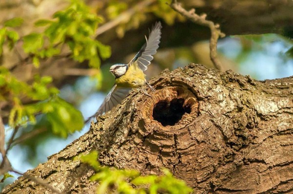 We have been watching pairs of blue tits house hunting in our oak trees since February and we predicted an early nesting season for the species. But this period of cold weather with frosty nights may have slowed things up.