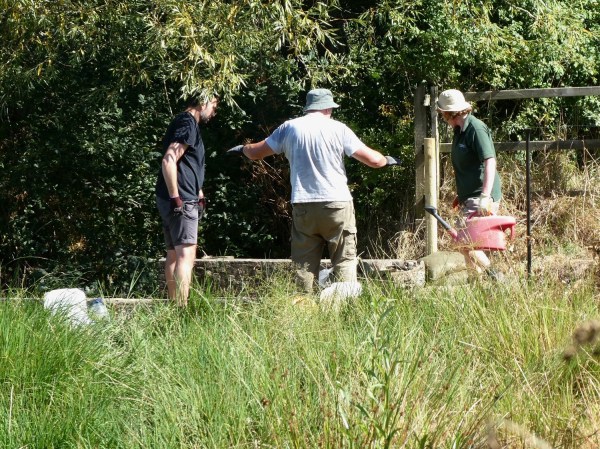 After the Wednesday Work Party had cleared away the vegetation from both sides of the dam, the contractor soon set to work.